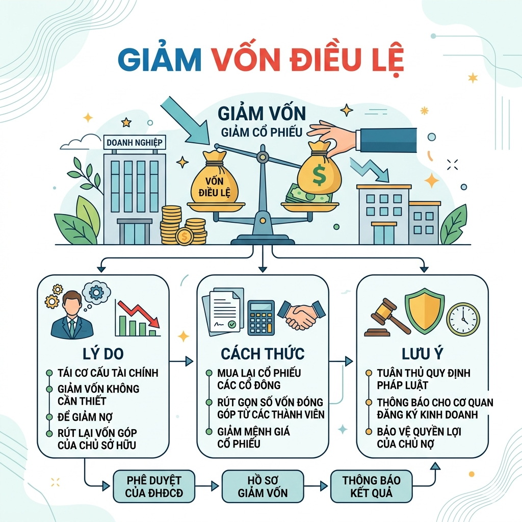 Giảm vốn điều lệ công ty cổ phần là một trong những vấn đề pháp lý quan trọng mà các doanh nghiệp cần hiểu rõ khi hoạt động. Việc giảm vốn điều lệ phải được tiến hành theo đúng trình tự, thủ tục do pháp luật quy định.